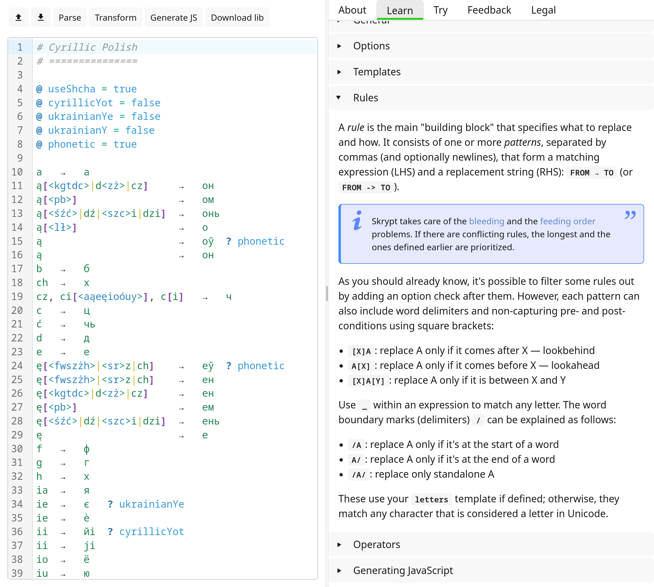 An easy and expressive text transformation language, suitable for transliteration and transcription.